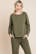 This Round Neck Raglan Sleeve Top and Pants Lounge Set is the perfect combination of comfort and style. The round neck design adds a touch of elegance, while the raglan sleeves provide a trendy twist. Whether you're lounging at home or running errands, this set will keep you looking chic and feeling relaxed all day long. The matching pants complete the look and ensure a coordinated outfit for any casual occasion.